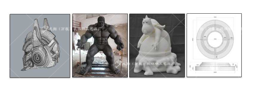 師傅。按照雕塑標(biāo)準(zhǔn)進(jìn)行雕塑造型。工廠根據(jù)造型選定雕塑材質(zhì),比如:泥塑,泡沫塑,木塑,GRC,海綿,金屬等一切適