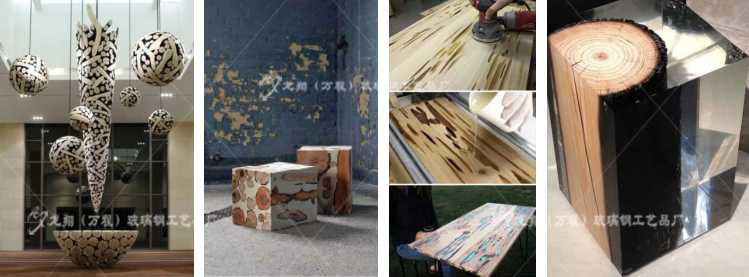 通過(guò)真實(shí)木料或者仿木料搭配玻璃,水晶,樹(shù)脂,混泥土及亞克力進(jìn)行靈活搭配,呈現(xiàn)出別致藝術(shù)造型
